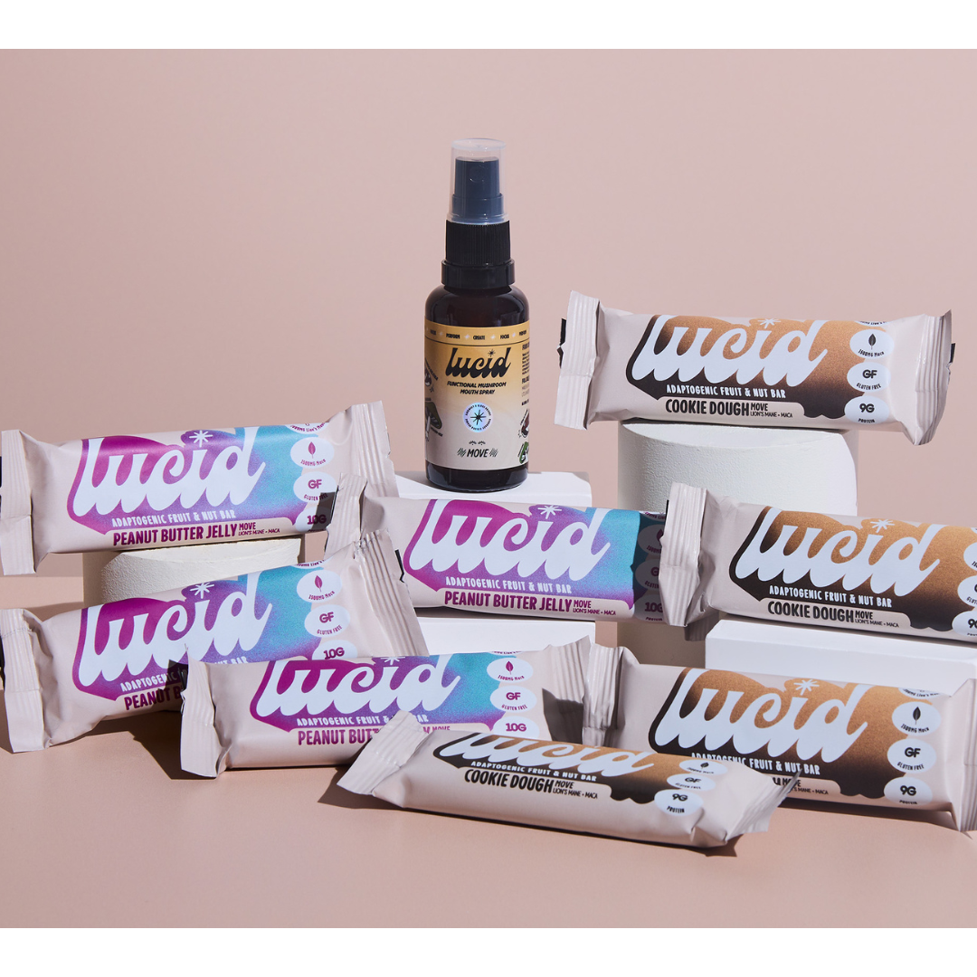 Lucid is your new best friend, designed to effortlessly slide into your grab-and-go lifestyle. Our bars blend 100% natural, premium ingredients with adaptogens and functional mushrooms to support your mind and body, helping you show up as your best self - whether you're crushing meetings, sweating it out at yoga, or bouncing back after one too many Friday-night mimosas. Life moves fast; we help you keep up.